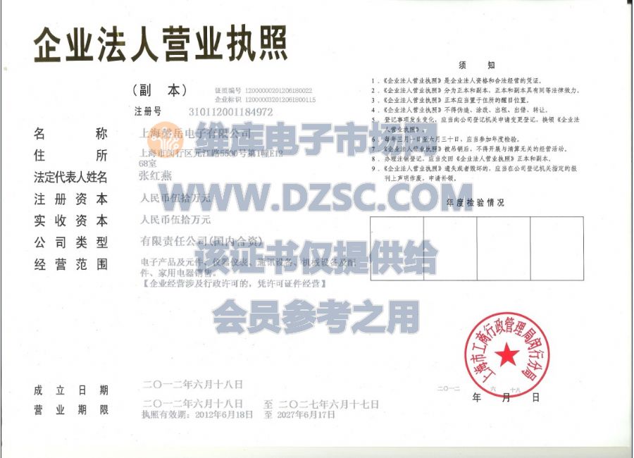 資質(zhì): VIP會(huì)員13年 、營(yíng)業(yè)執(zhí)照